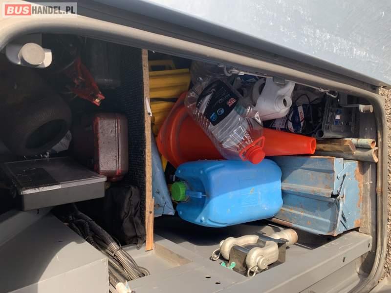 Wyposażenie: video, WC, lodówka, kabina sypialna, nawiewy dyszowe, siateczki, ABS, ASR, tempomat, retarder, CD, podnóżki, stoliczki, mikrofon, radio, regulacja wysokości nadwozia, podwójne szyby boczne, fotele odchylane i rozsuwane, DVD, ogrzewanie stacjonarne, ESP