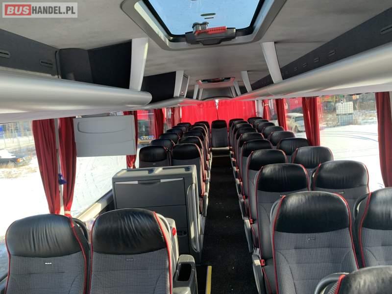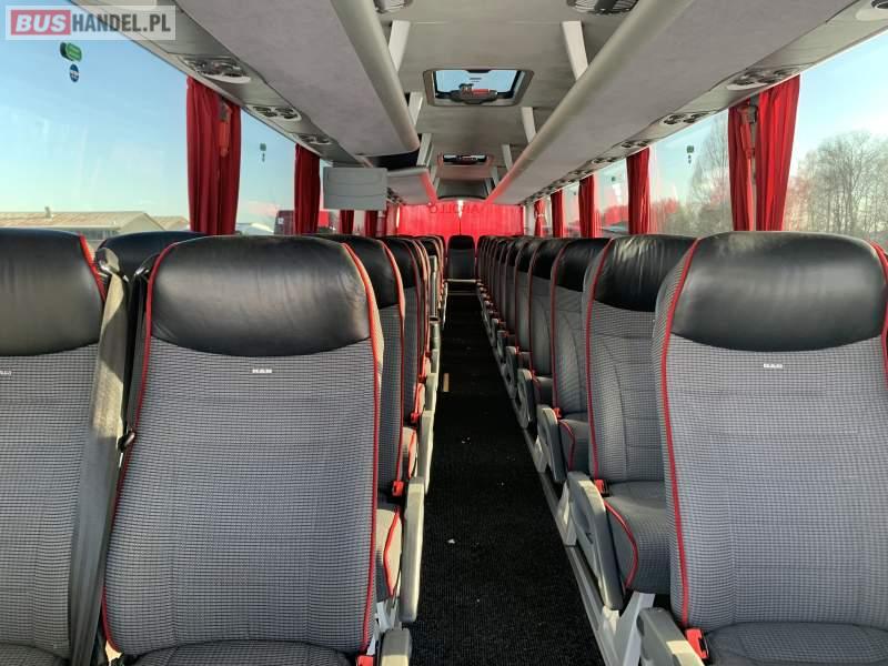 Wyposażenie: video, WC, lodówka, kabina sypialna, nawiewy dyszowe, siateczki, ABS, ASR, tempomat, retarder, CD, podnóżki, stoliczki, mikrofon, radio, regulacja wysokości nadwozia, podwójne szyby boczne, fotele odchylane i rozsuwane, DVD, ogrzewanie stacjonarne, ESP